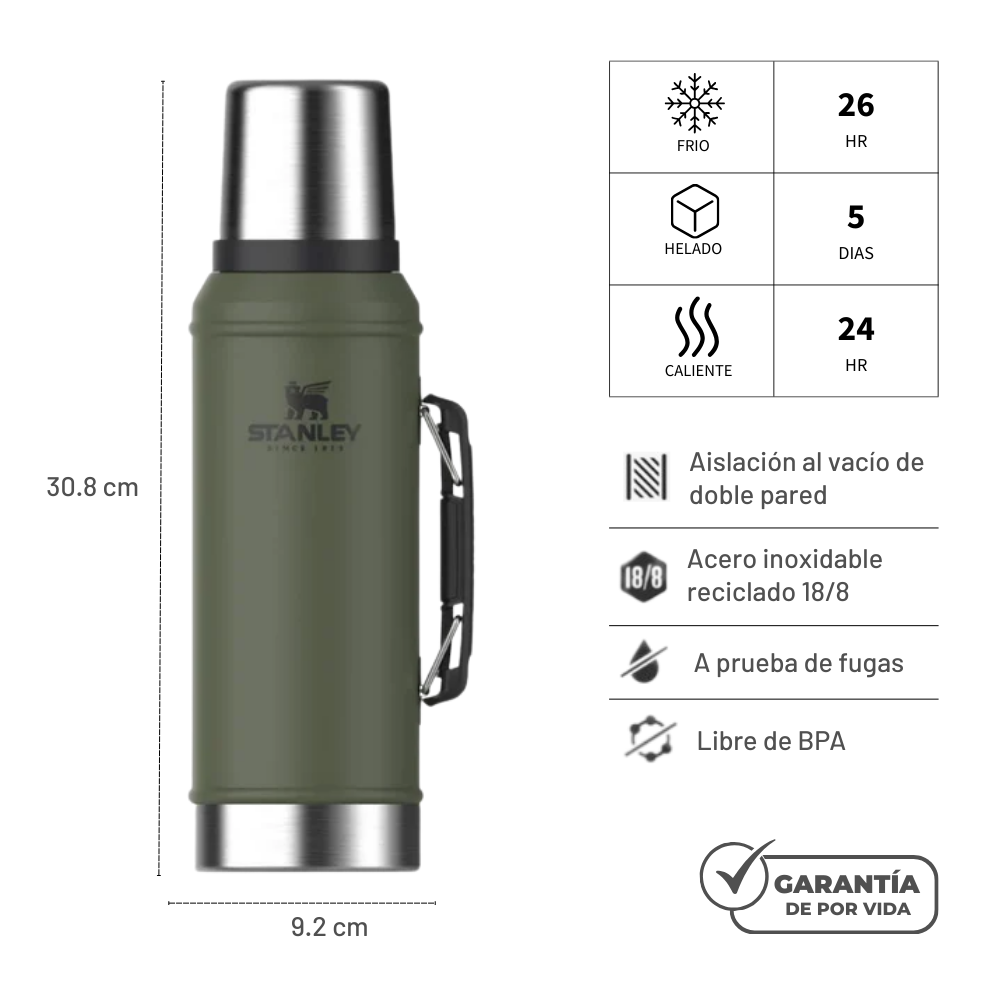 El icónico termo Stanley de 946 ml ha marcado las aventuras al aire libre durante generaciones. Obtén este clásico y disfruta de una vida de bebidas calientes y recuerdos compartidos.