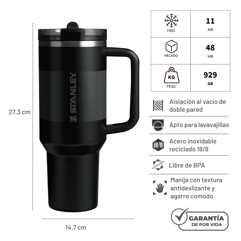 Presentamos el icónico Quencher, ahora con la tapa hermética ProTour Flip Straw. El vaso Quencher ProTour Flip Straw de 1,18 litros simplifica la hidratación: levanta la bombilla integrada para beber y ciérrala al terminar. Los colores clásicos presentan gráficos frescos, una textura suave en el asa y una tapa bicolor. El agua se mantiene helada durante horas gracias al aislamiento al vacío de doble pared. Cabe en el portavasos del auto.
