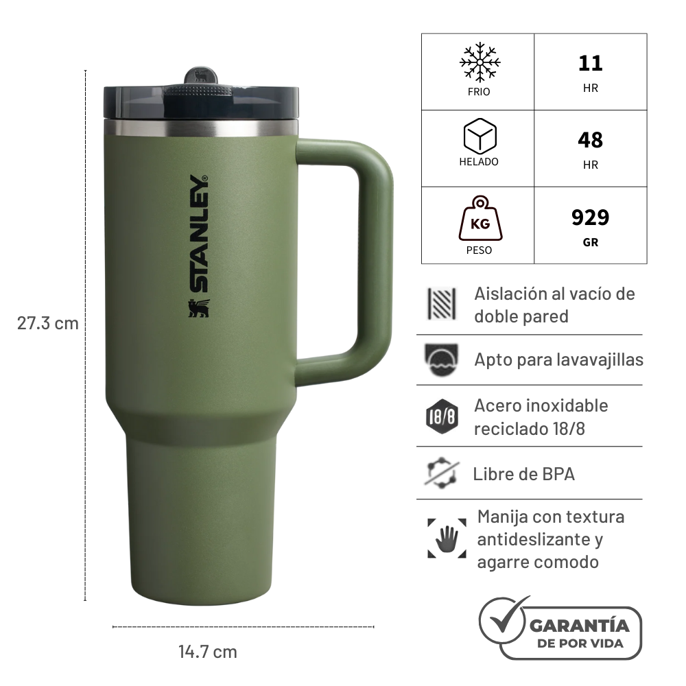 Presentamos el icónico Quencher, ahora con la tapa hermética ProTour Flip Straw. El vaso Quencher ProTour Flip Straw de 1,18 litros simplifica la hidratación: levanta la bombilla integrada para beber y ciérrala al terminar. Los colores clásicos presentan gráficos frescos, una textura suave en el asa y una tapa bicolor. El agua se mantiene helada durante horas gracias al aislamiento al vacío de doble pared. Cabe en el portavasos del auto.