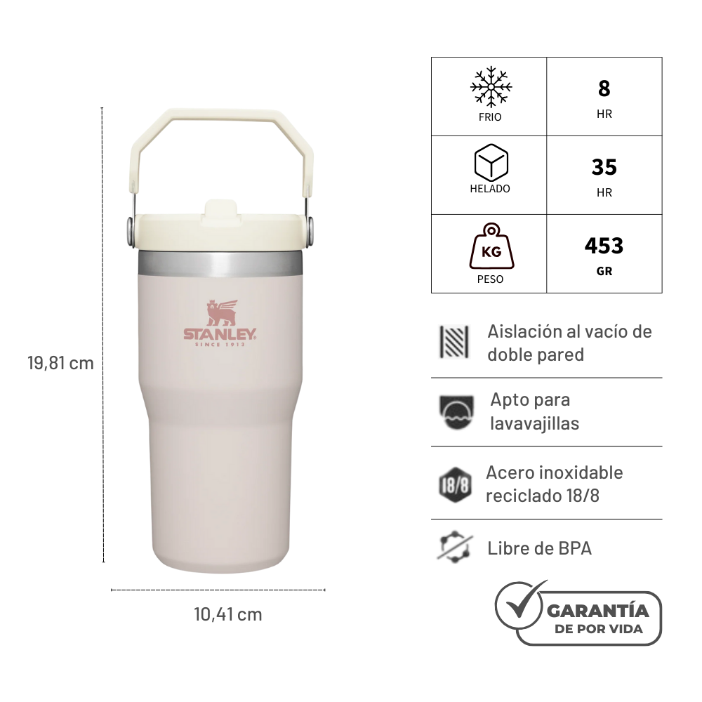 Este atrevido y colorido vaso está hecho para mantenerte hidratado con un estilo completamente funcional. Ideal para viajes en auto y para hacer ejercicio en tu casa, gimnasio o donde quieras. Con bombilla incorporada, es fácil de tomar y al cerrarla, la botella es completamente a prueba de fugas. Además, el aislamiento de vacío de doble pared de Stanley mantiene tus bebidas heladas por más tiempo, lo que es ideal para los días calurosos. Cabe cómodamente en el portavasos de tu auto y tiene una asa plegable que permite agarrarlo rápidamente.